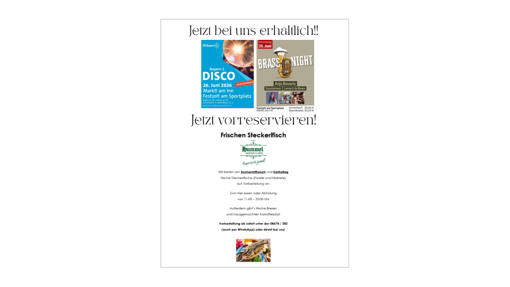 Um vorherige telefonische Reservierung wird unbedingt gebeten.