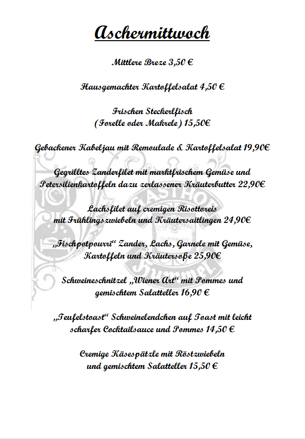 - Montag & Dienstag ab 17:00 Uhr – 20:45 Uhr